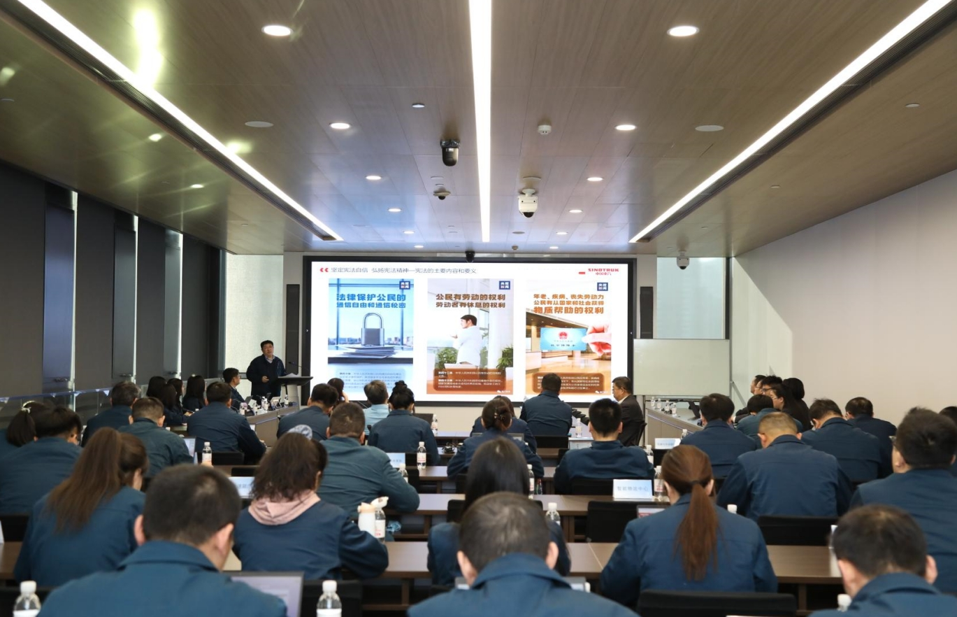 2024年12月4日,中国重汽围绕“大力弘扬宪法精神,推动进一步全面深化改革”的主题,组织开展了“宪法宣传周”专题法治讲座。山东重工相关部门、中国重汽法务合规业务有关负责人员,共计140余人通过线上线下的方式参加活动。