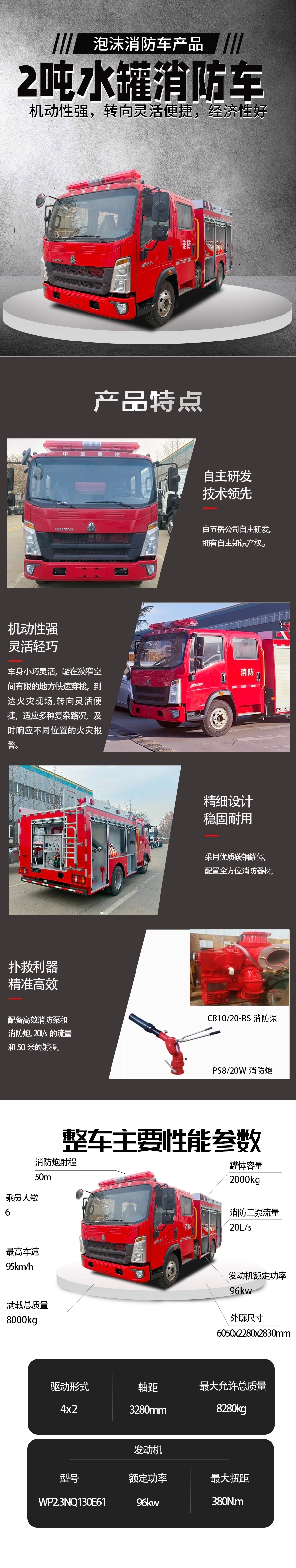 2吨水罐消防车